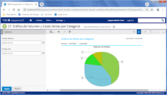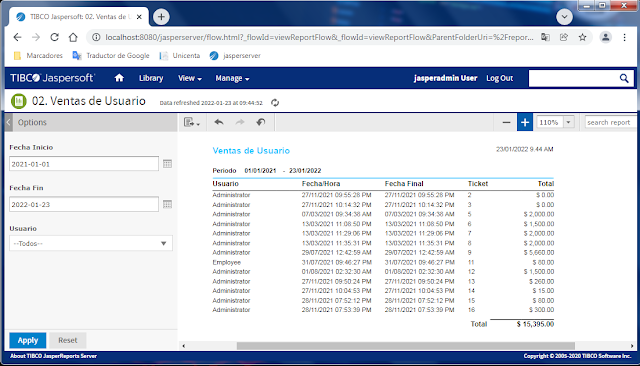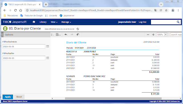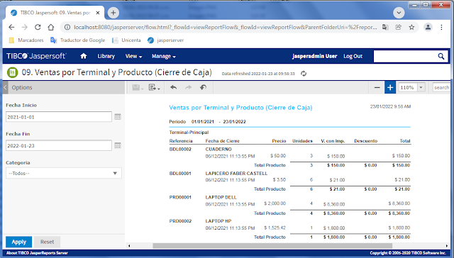 En este post se mostrarán 50 Reportes Web implementados con JasperReports Server (Community) tomando como base los reportes existentes de Unicenta 4.6.1. Los reportes están organizados por módulos, tales como: clientes, inventario, ventas, control presencial, mantenimiento y proveedores.